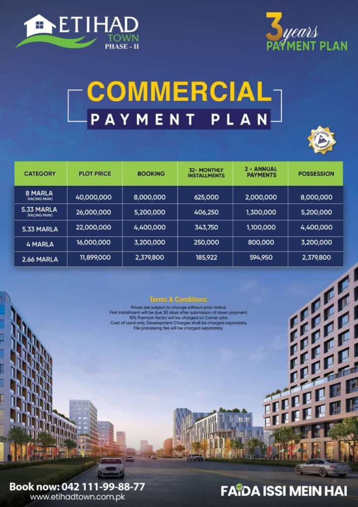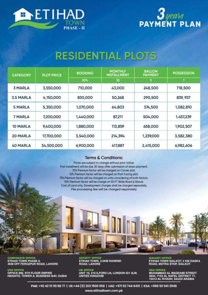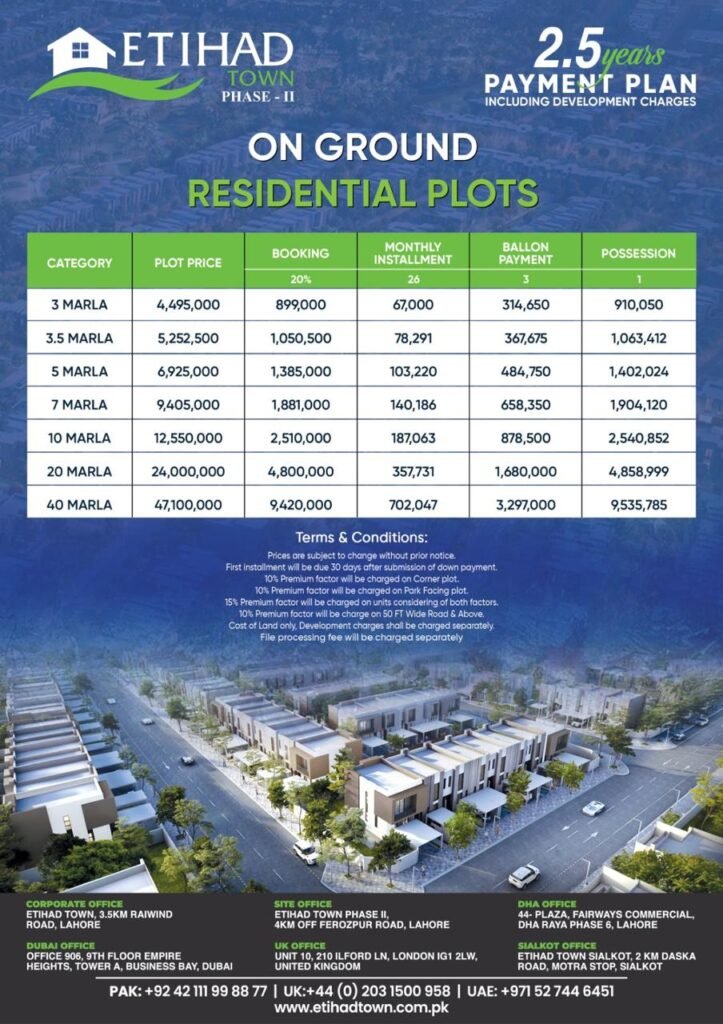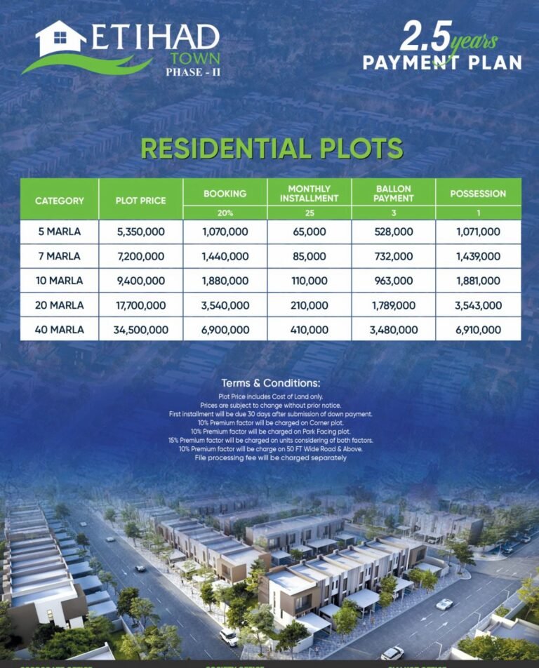 Payment Plan Etihad Town Phase-II On Ground Residential Plots